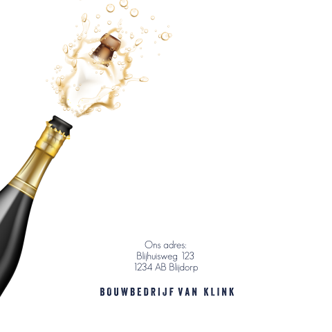 Zakelijke kerstkaart met gouden spetters en champagne fles