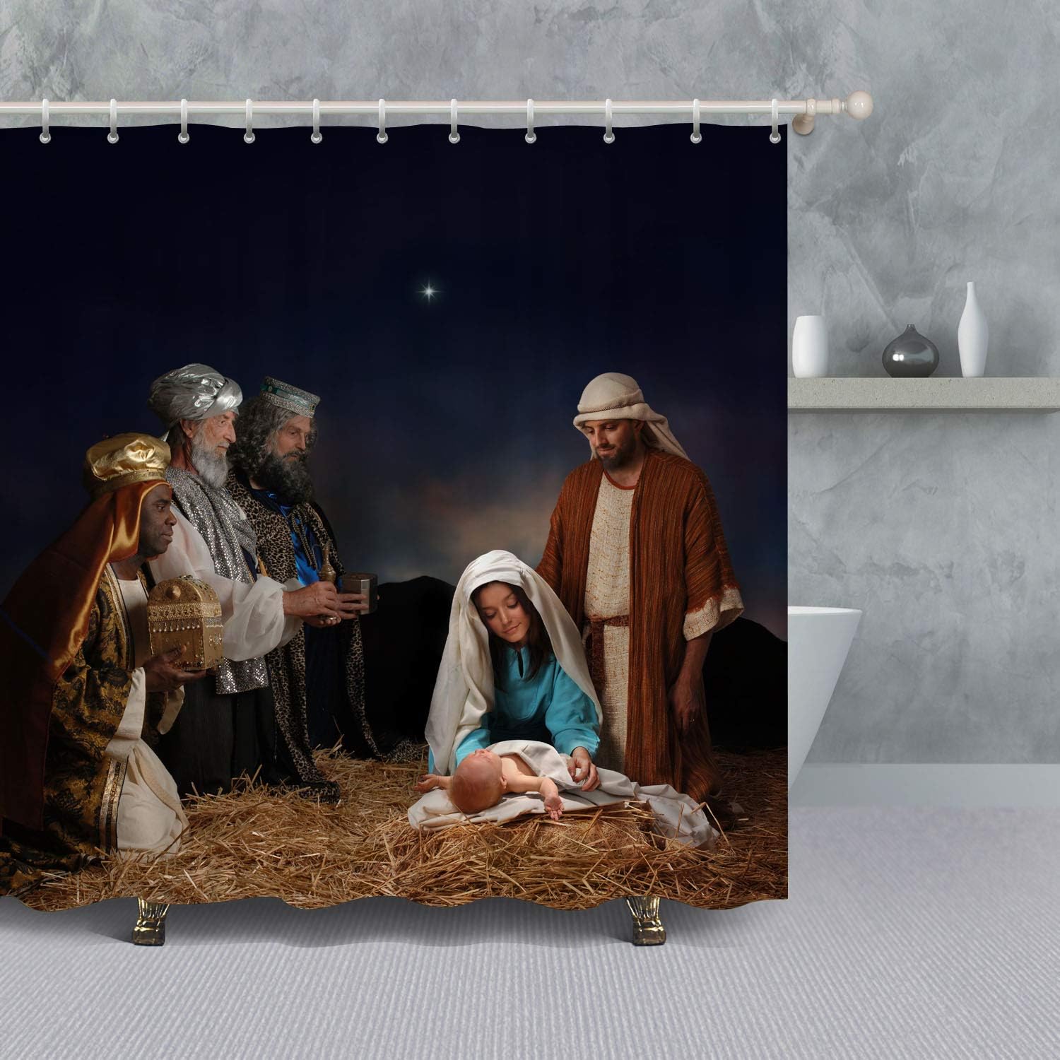 Amazon.com: VANCAR Christmas Decor The Nativity Story Birth of Jesus Shower Curtain for Bathroom Decoration Waterproof Polyester Fabric Xmas Merry Christmas Day Bath Shower Curtain with Hooks 66"x72": Furniture & Decor
